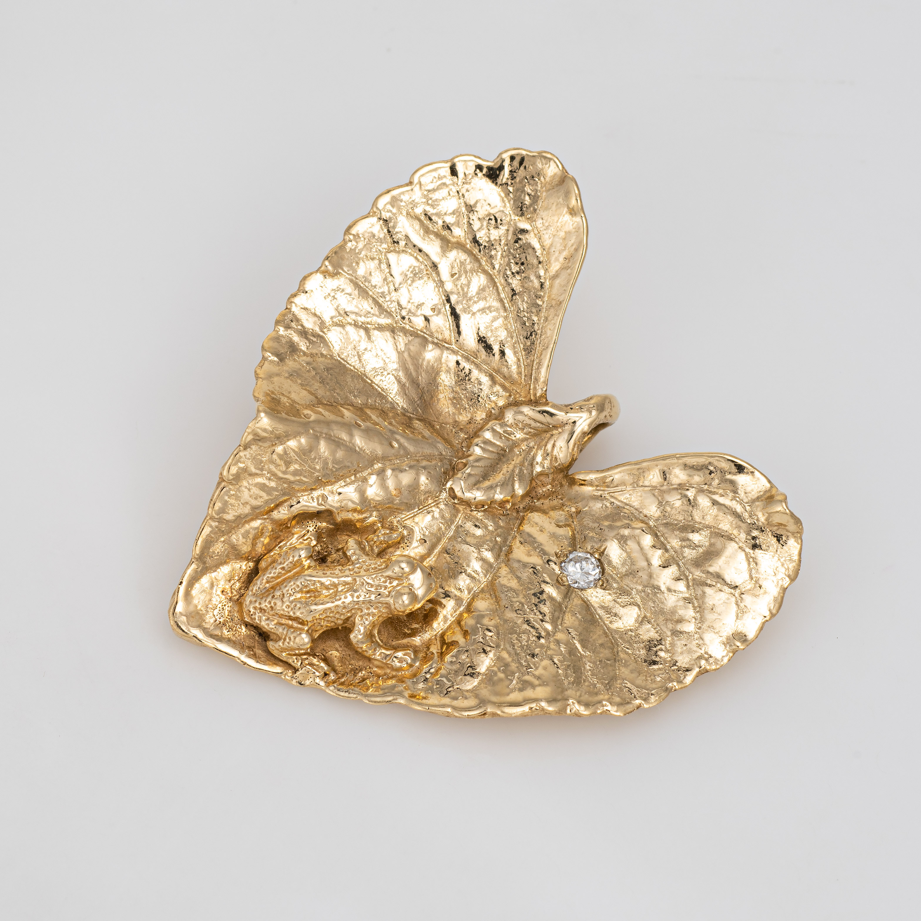 Vintage Frog Pendant Heart Shaped Leaf Heavy 24.5gm Estate Fine Jewelry 1.5"