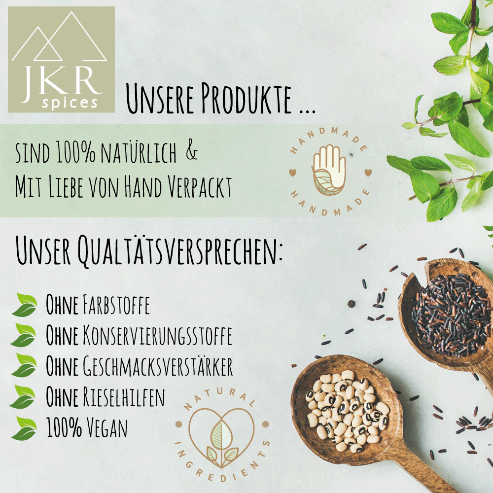 Qualität: Premium Qualität | Nachgereinigte & keimreduzierte Produkte | Handverpackt in Deutschland | 100% natürlich | frei von Farb- & Aromastoffen |