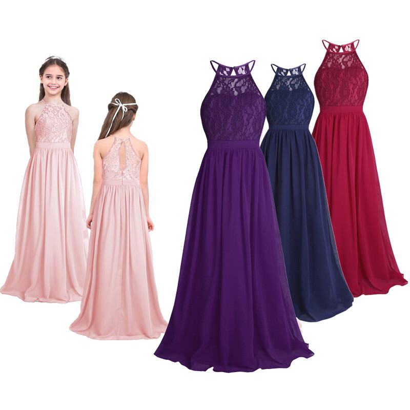 US Kids Girls Chiffon Long Party Junior Wedding Evening Prom Maxi Gown Dress