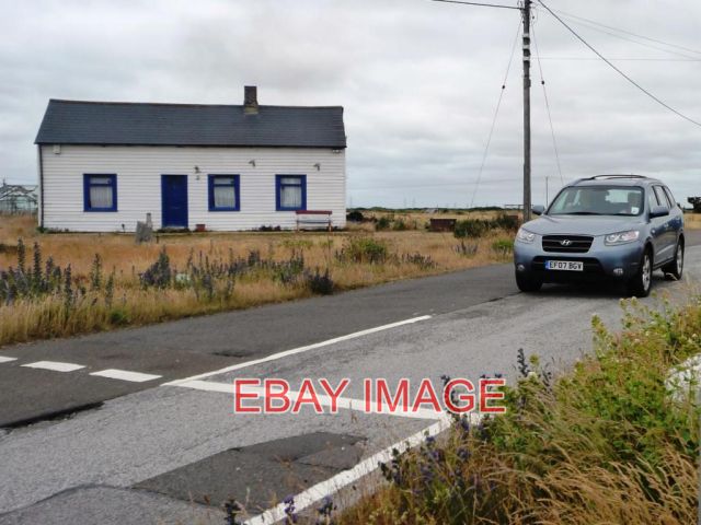 PHOTO LEVEL CROSSING DUNGENESS ROAD LOOKING WEST FROM A TRAIN ON THE ROMNEY HYTHE & DYMCHURCH RAILWAY. 2013 COPYRIGHT (Photograph and text in Extra Info) CHRISTINE JOHNSTONEPHOTO PAPER THICKNESS NORMAL PHOTOGRAPH THICKNESS