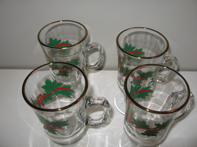 Set of 4 Libbey Glass Co. Irish Christmas Mugs?