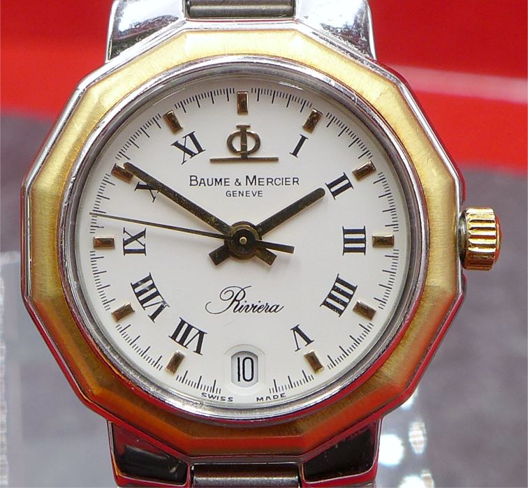 Sie bieten auf eine tolle original Baume Mercier Riviera Damenuhr in Edelstahl Gelbgold.