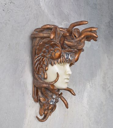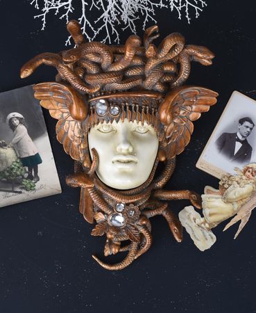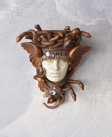 Die Wandkonsole „Gorgo Medusa“ verbindet auf faszinierende Weise die antike Mythologie mit der Eleganz des Jugendstils.