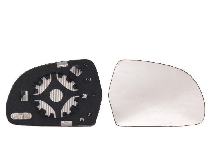 This mirror glass is heated and incorporates a heating element attached to the back of the glass. Usually 2 electrical pins are visible on the backing plate and 2 wires from the mirror body are connected to these. This heated mirror glass can also be used with non-heated mirrors.
