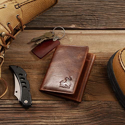 Bull Guard Best Leather Men's RFID Trifold Wallet With ID Great Outdoor Wallet