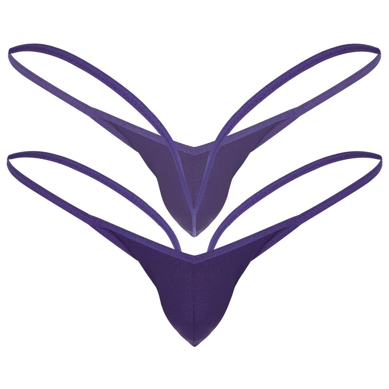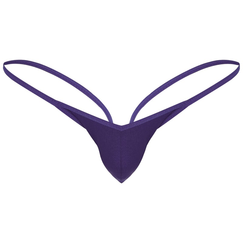 - Low-rise, elastic waistband and criss-crossing side bands, front bulge pouch.