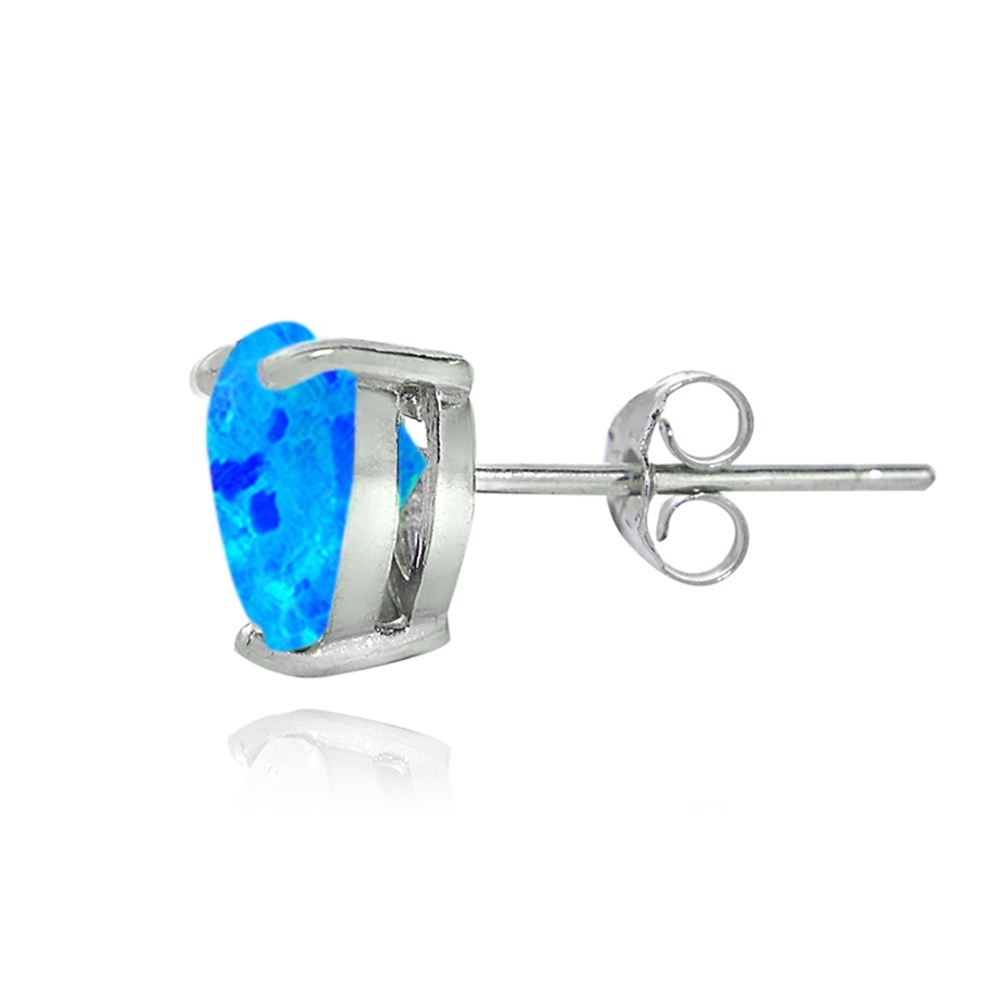 | These attractive earrings showcase created blue opal heart shaped studs. They are crafted of sterling silver and secured by post with friction backs. E13148BOP |