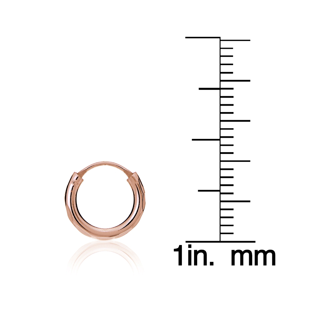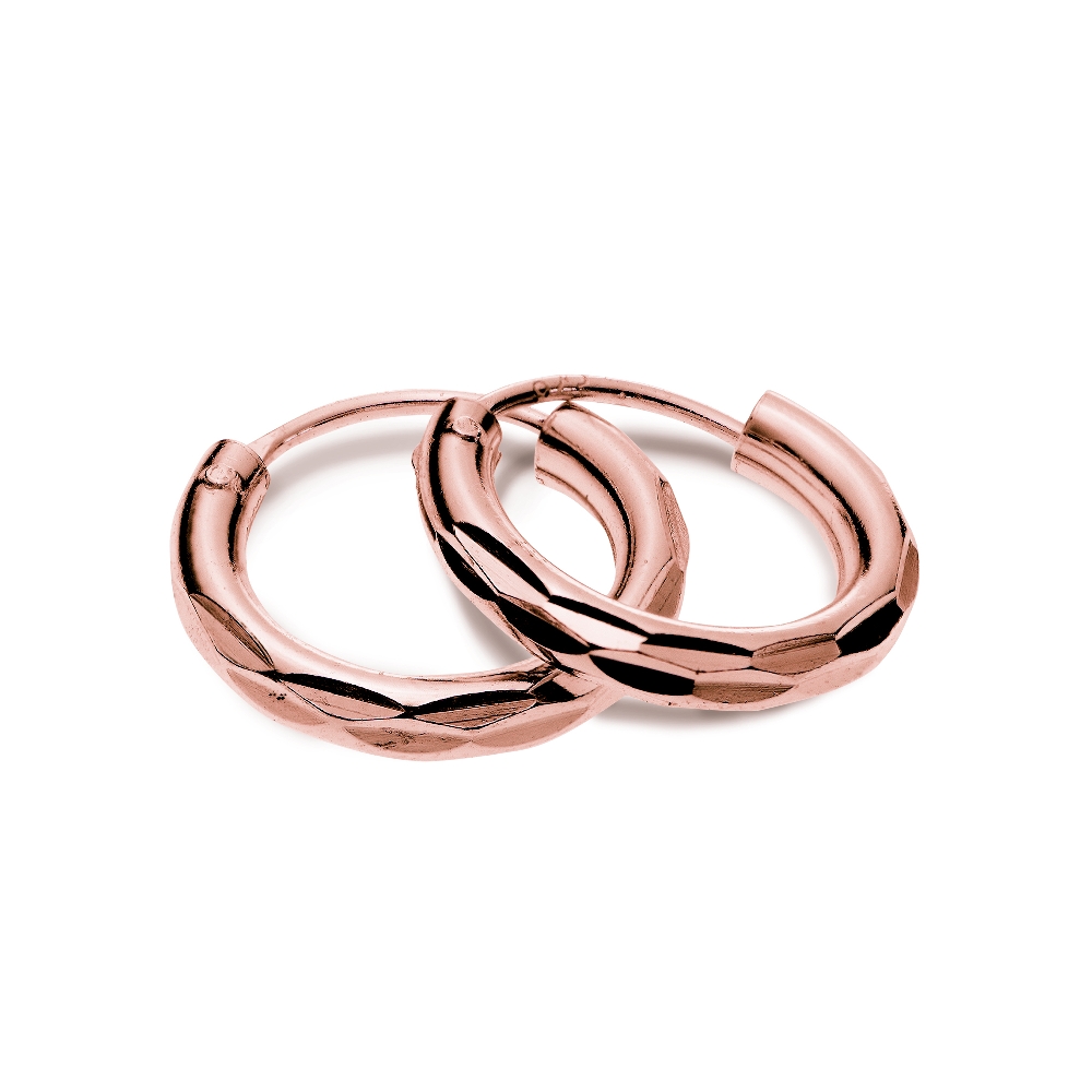 | These earrings feature rose gold tone over sterling silver high polished diamond-cut round hoops. They are 10mm in diameter. HRG14491-10 |