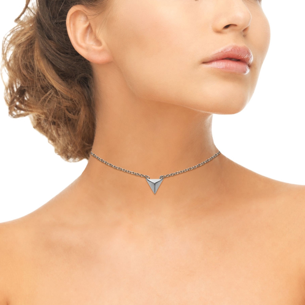| This beautiful choker features a polished pyramid. The necklace is crafted of fine sterling silver and is secured by a spring ring clasp. The necklace includes a 13" rolo chain plus a 3" extender. It can be purchased as necklaces for women, necklaces for teen girls, chokers for women and chokers for teen girls. N15773 |