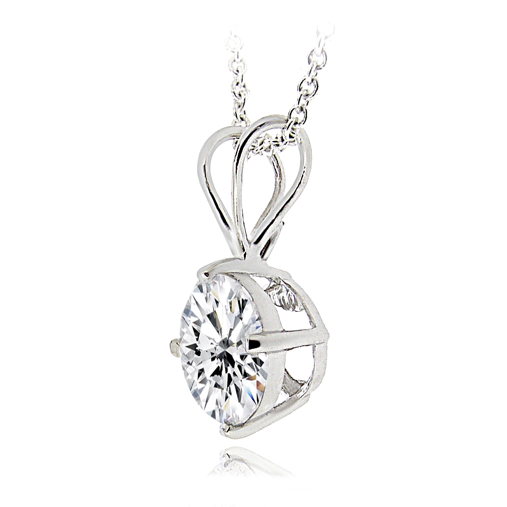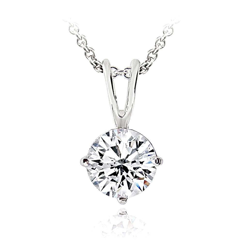 | This classic solitaire pendant is the perfect accessory to accent any outfit. The necklace features one 8mm round CZ stone showcased in a silver tone brass setting. It dangles from an 18-inch rolo chain. PBR12643 |