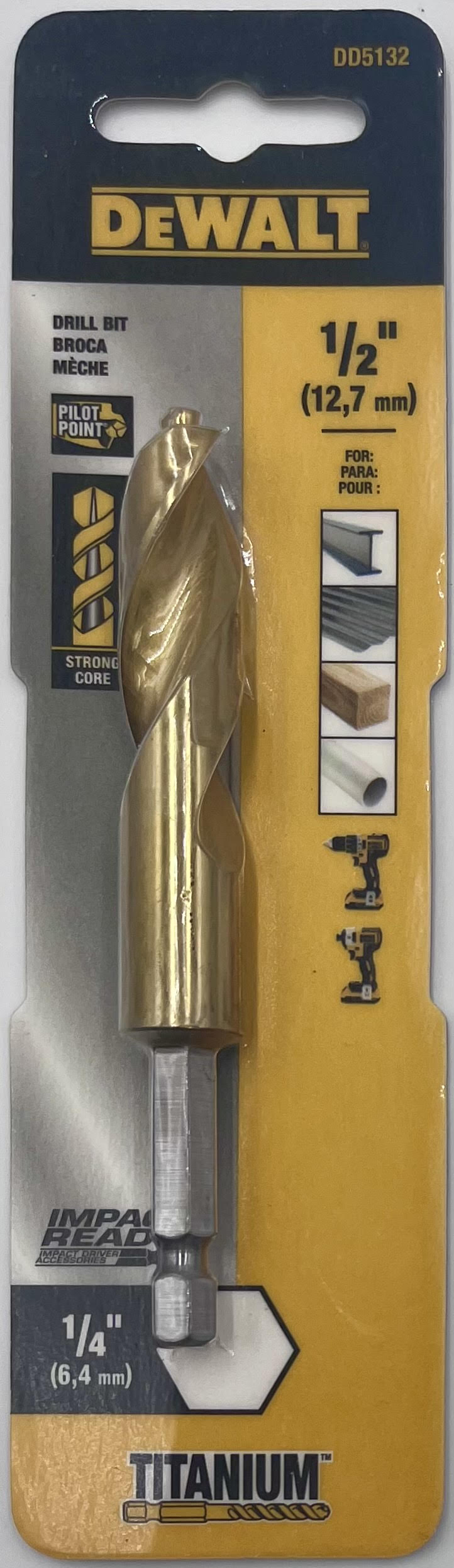 DeWalt DD5132 Pilot Point Impact Ready Titanium Drill Bit 1/2 in