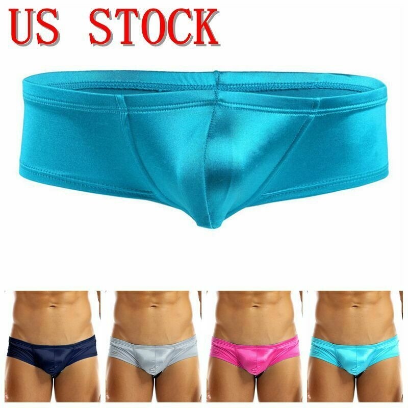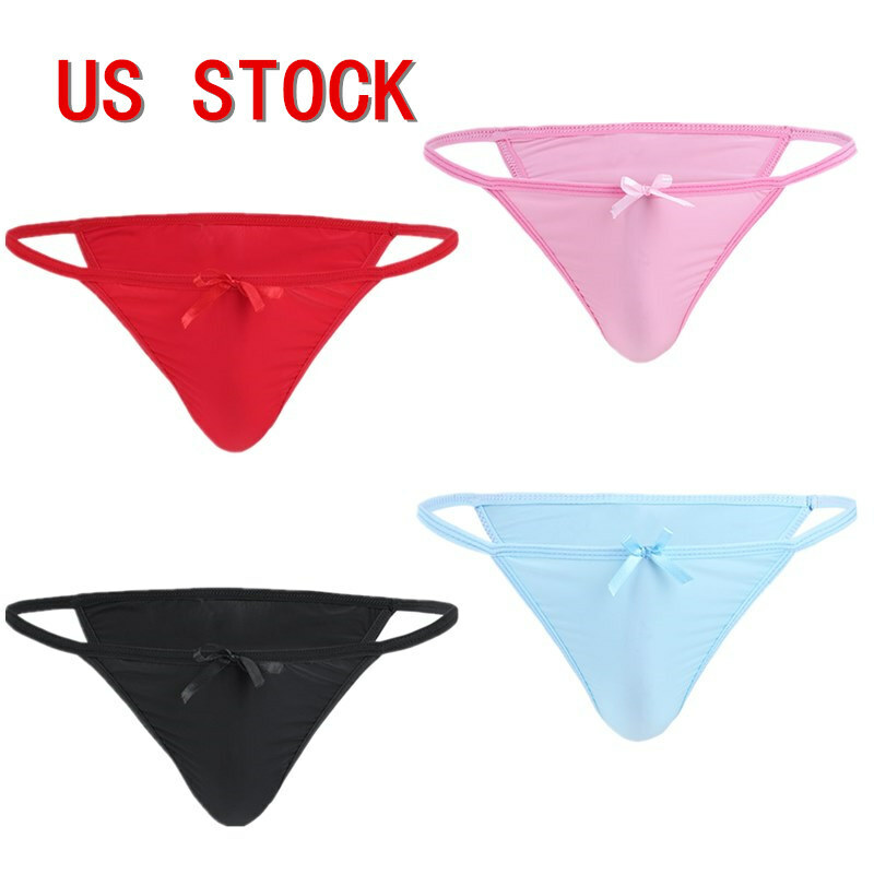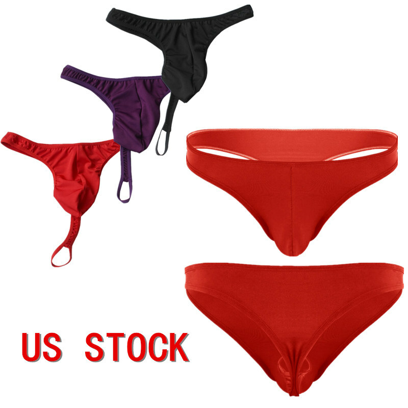 Low-rise with stretchy waistband, front with a red stitched bowknot and bulge pouch.