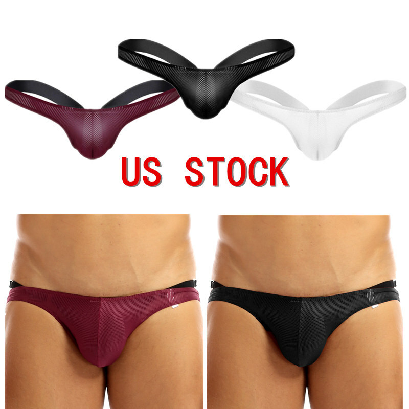 Low-rise with stretchy waistband, front bulge pouch with 2 buttons, open butt design.