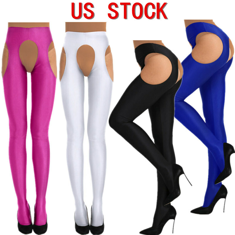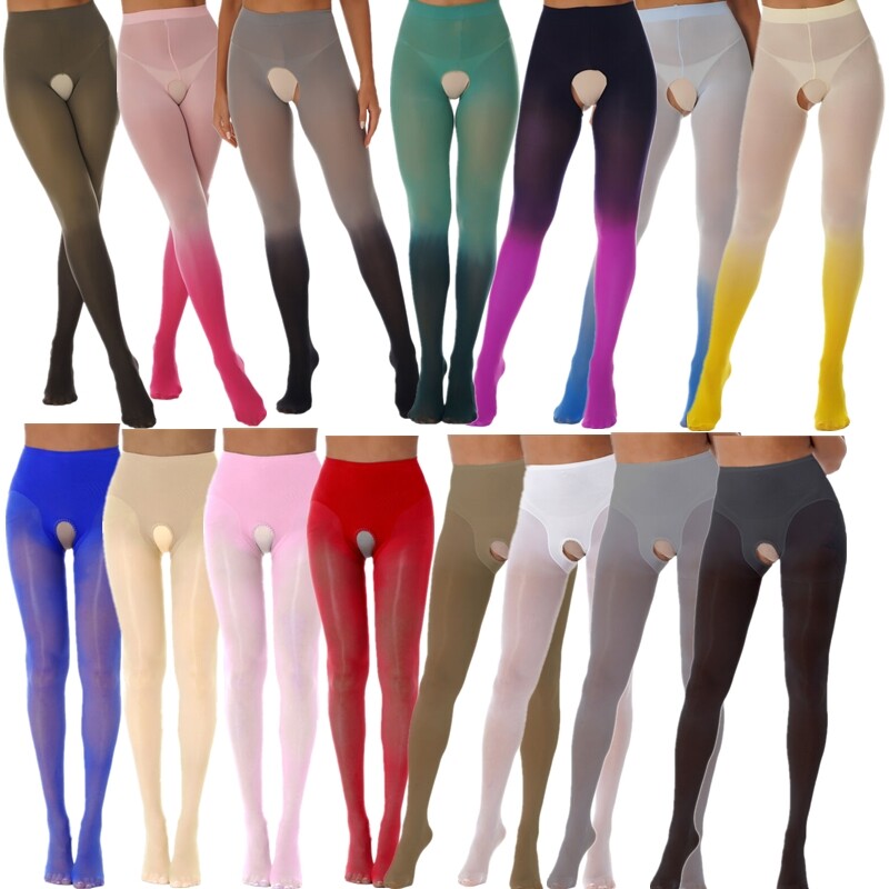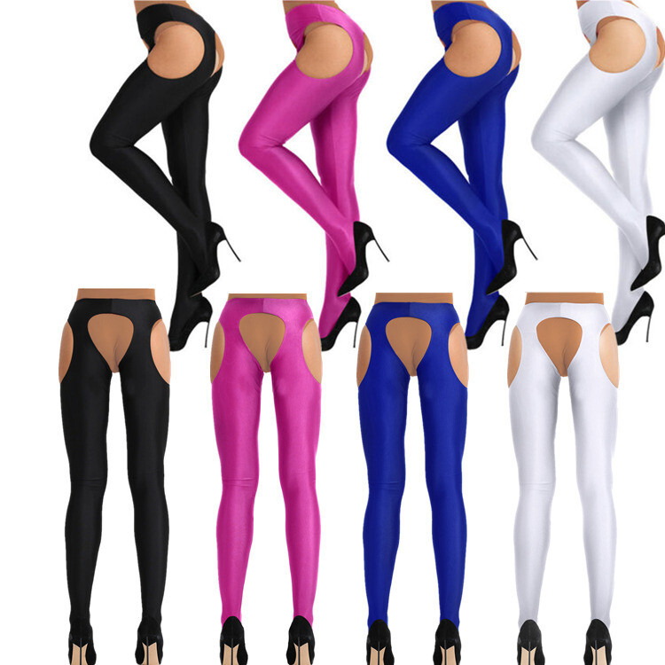 Elastic waistband, hollow out and open crotch design, full-footed, solid color