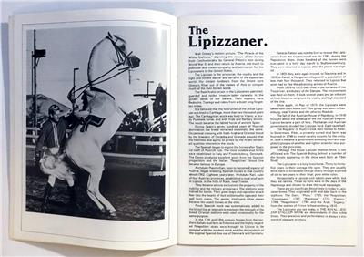 Here's a circa 1970's program for a performance of the Lipizzaner Stallions. Has 16 pages of info and photos of the horses. Excellent shape.