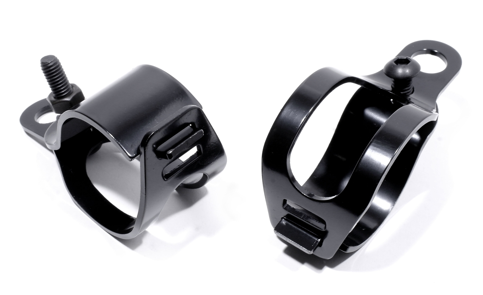 Black headlight bracket to mount headlights with side attachment to the fork or for other components