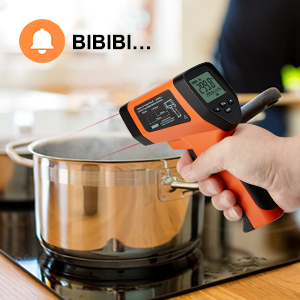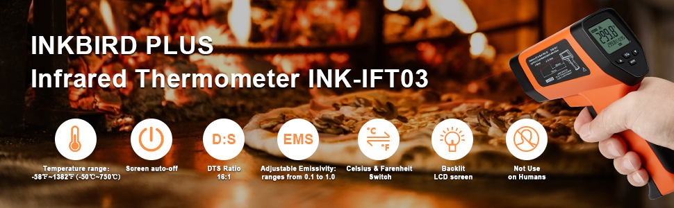 INKBIRD Infrarot-Thermometer (nicht für Menschen), 16:1 DS-Rate, Lasergriff, -58℉~1382℉ (-50℃~750℃), berührungslose digitale Temperaturpistole mit Alarm für hohe/niedrige Temperatur, einstellbarer Emissionsgrad, Hintergrundbeleuchtung (Orange )