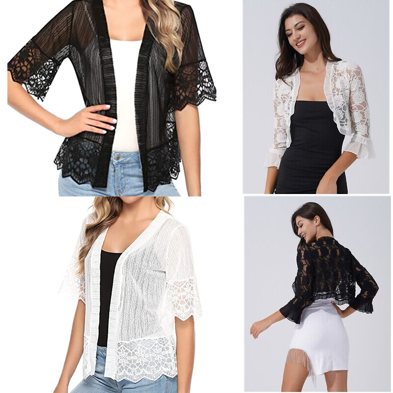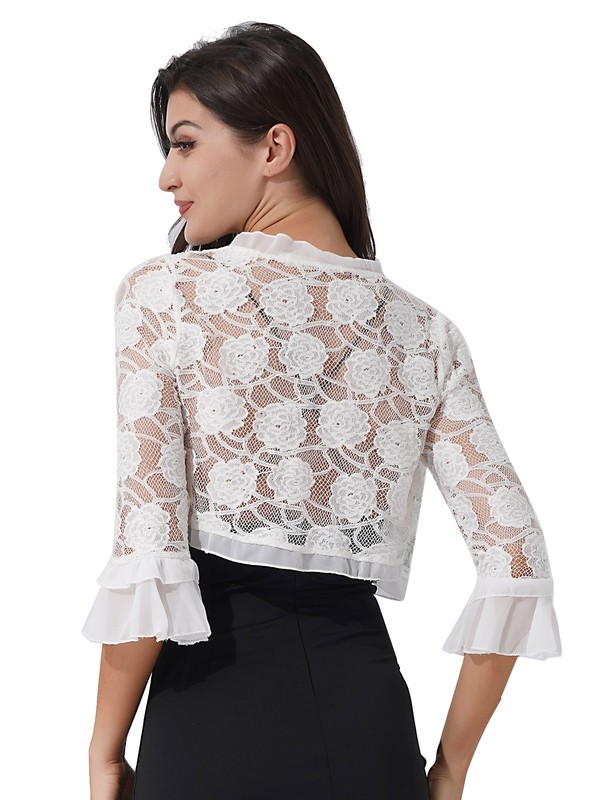 Women half sleeve bolero elegant ruffle edge open front floral lace hollow out shrug bolero cardigan for wedding evening dresses.