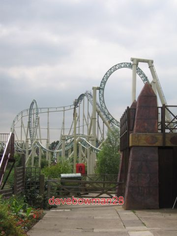 PHOTO THORPE PARK THE LOOPS OF COLOSSUS VIEWED BETWEEN RIDES. 2006 COPYRIGHT (Photograph and text in Extra Info) AD ACTAPHOTO PAPER THICKNESS NORMAL PHOTOGRAPH THICKNESS