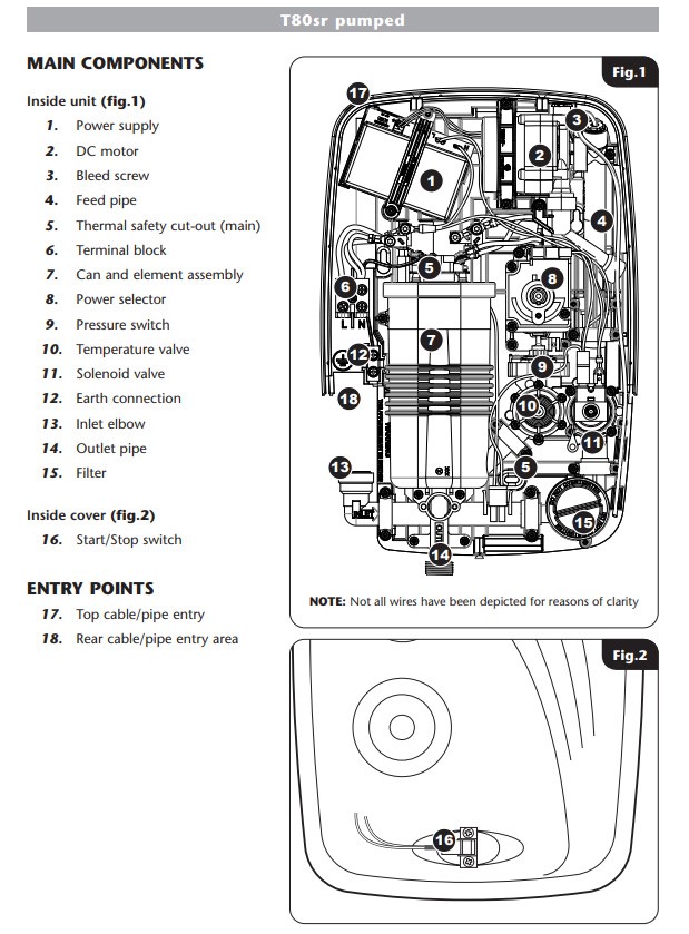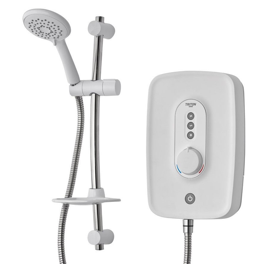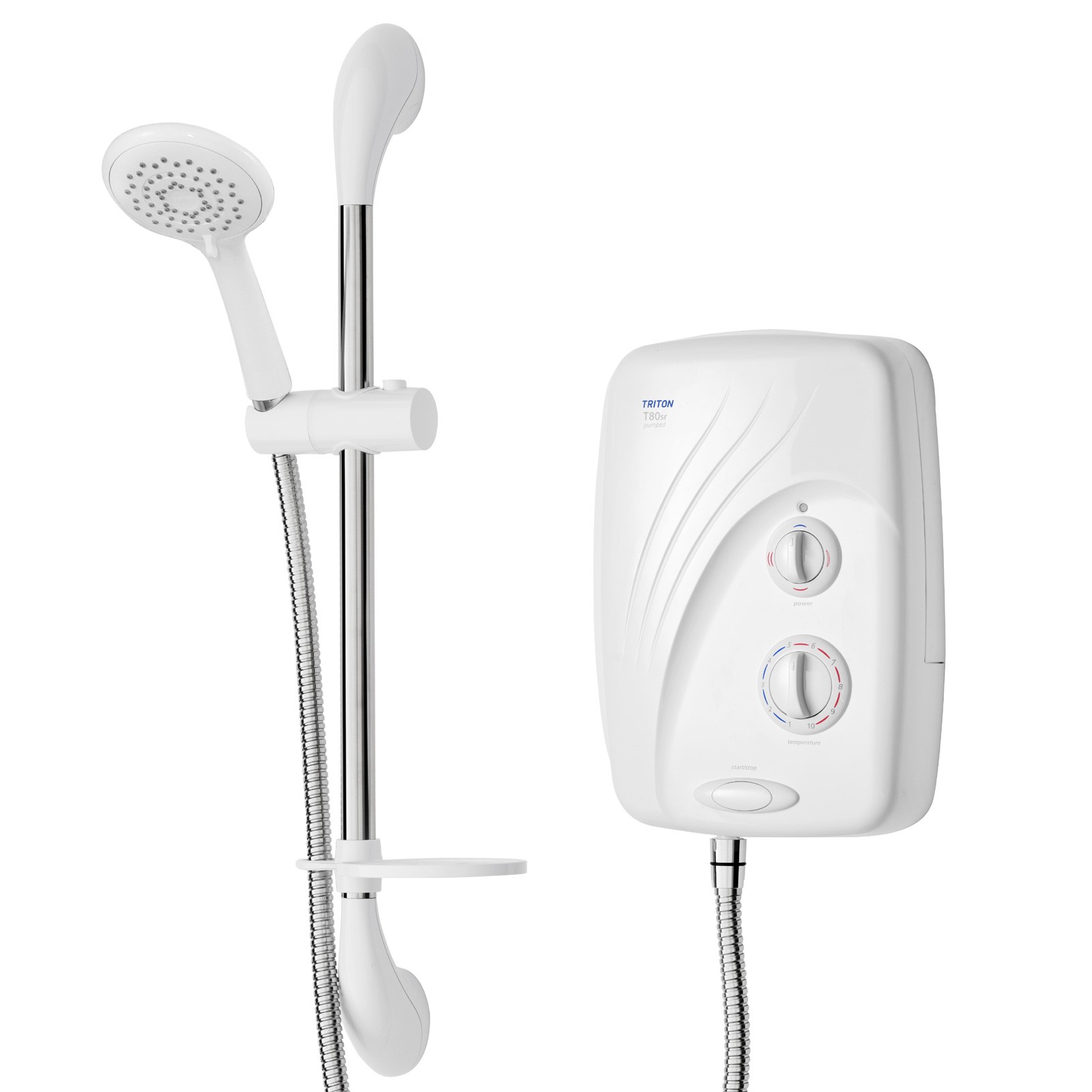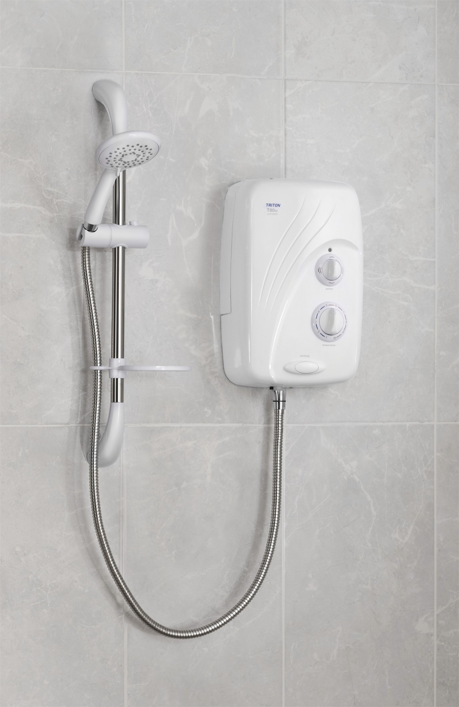 Styled on the best selling T80si; the Triton T80SR silent running pumped electric shower is a tank-fed integral pumped electric shower designed for installations where the pressure of the mains water supply is too low, unreliable or non-existent, with push START/STOP button and 'Power On' indicator.