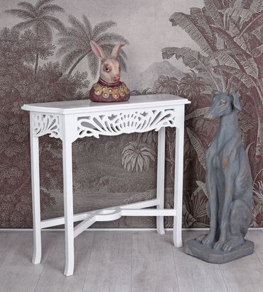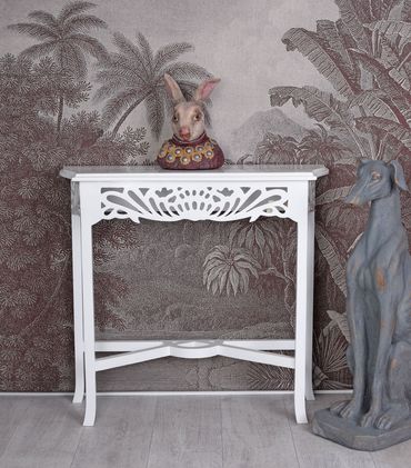 With its dimensions of approx. 74 cm height,, 80 cm width and 25 cm depth The console is perfect for the hallway, the living area or as a decorative storage table in the bedroom. Whether as a delicate side table for vases and lamps or as a charming console for personal accessories - this piece of furniture is versatile and ensures romantic accents everywhere.