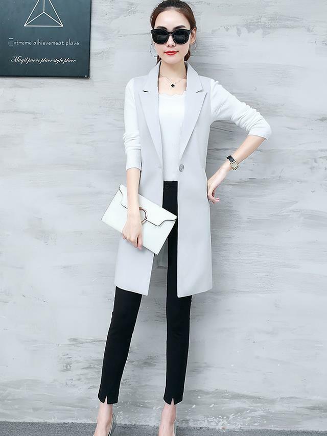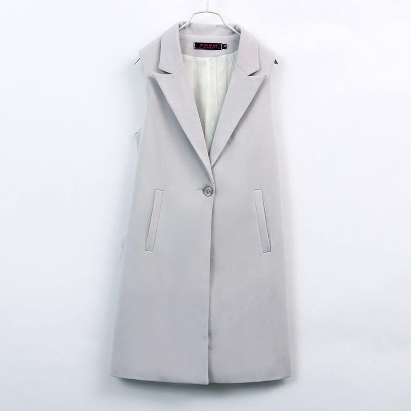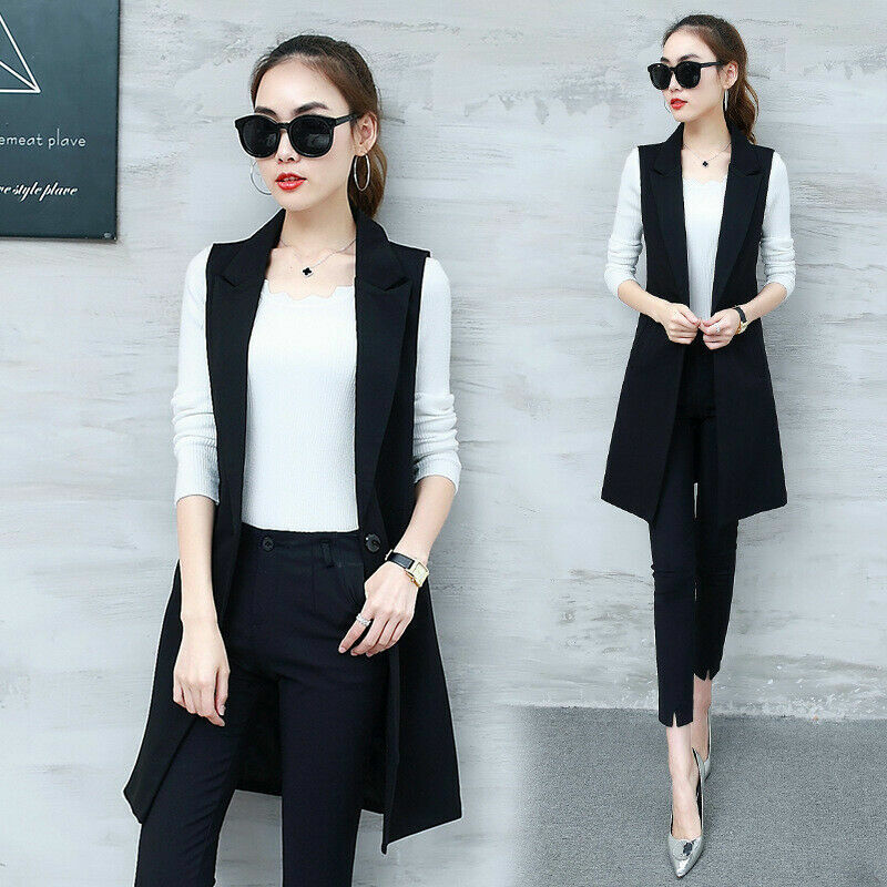 Women Sleeveless Lapel Coat Long Cardigan Jacket Suit Elegant Waistcoat Vest