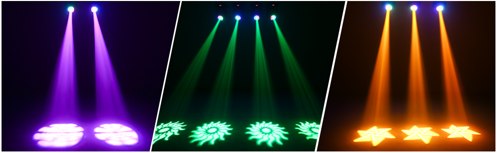 1. Large rotating angle, X axis rotates 540° pan, Y axis 270° tilt, DJ moving head stage light beam covers lots of the ground with adjustable speed and brightness color/pattern changing, dimming, flashing, creates stunning visual effects.