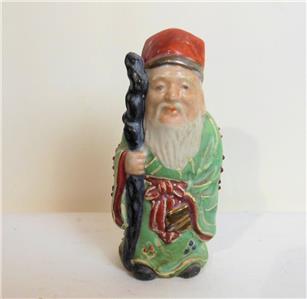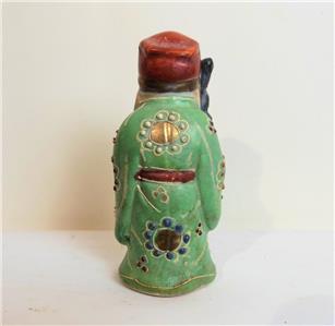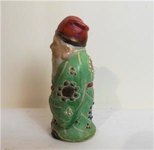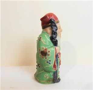 This figure is Shou Lao...the immortal who brings longevity He is known by venerable age, long white beard, and he always carries a walking stick. Very detailed and accented with gold. This ceramic piece has no ID...but it was part of a collection with many pieces from Japan. If you know more about this piece...I would love to have more information.
