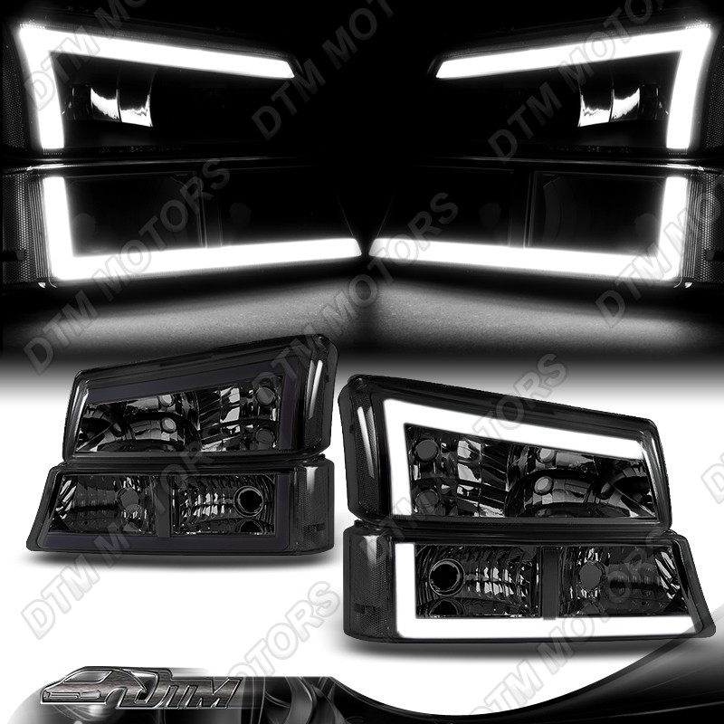 • For 03-07 Chevy Silverado/02-06 Avalanche LED Bar Smoke Headlights+Bumper Lamps