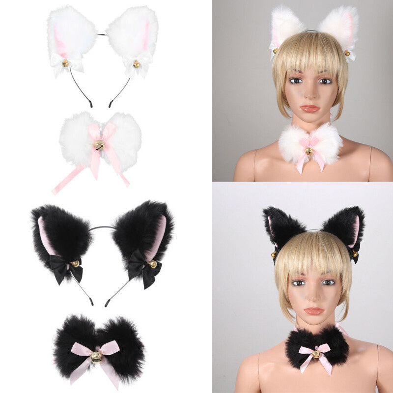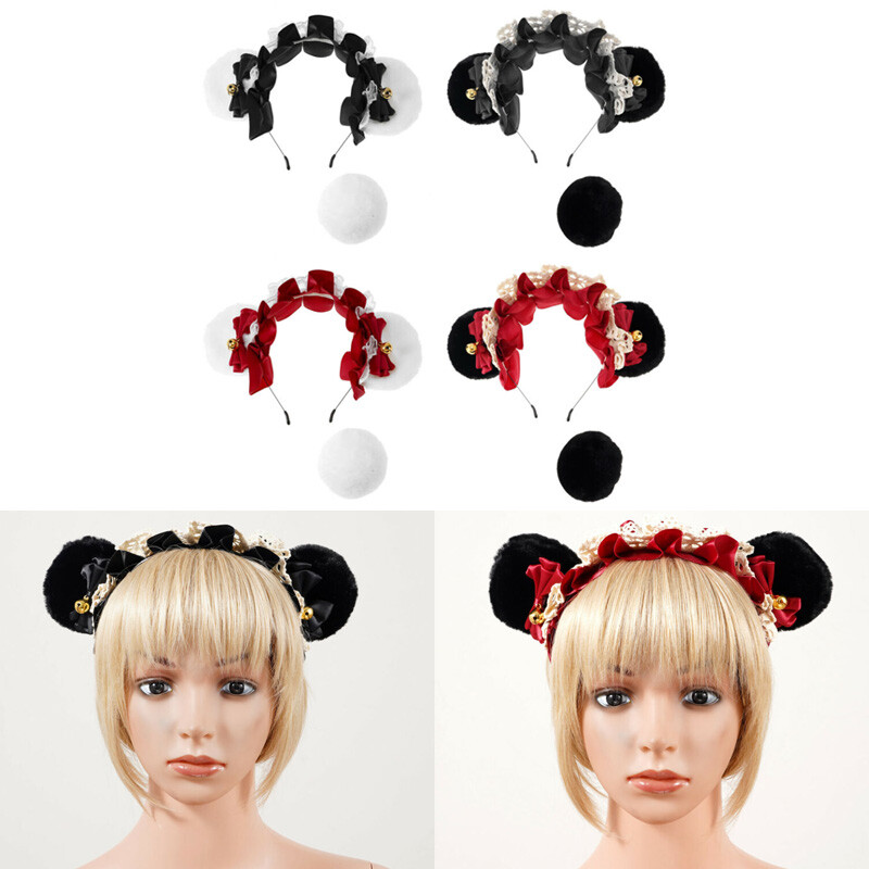 2Pcs Women Lolita Cute Animal Style Rabbit Ears Solid Color Hair Hoop for Cosplay Halloween Costume.