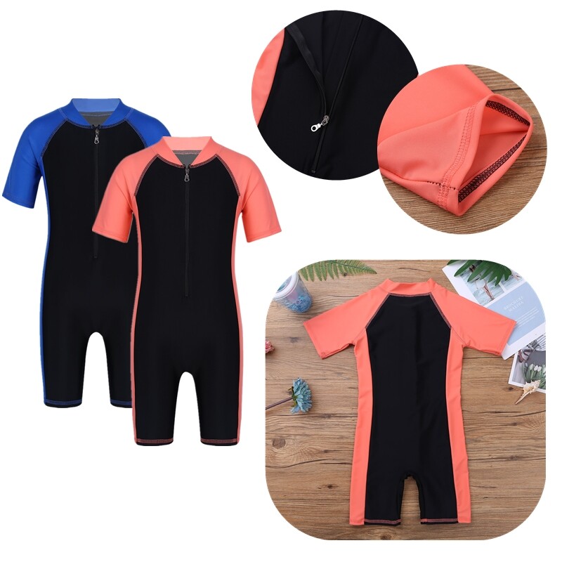 Short sleeves, front zipper closure for easy dressing, with zipper flap to protect your kid’s delicate skin when zipping and unzipping.