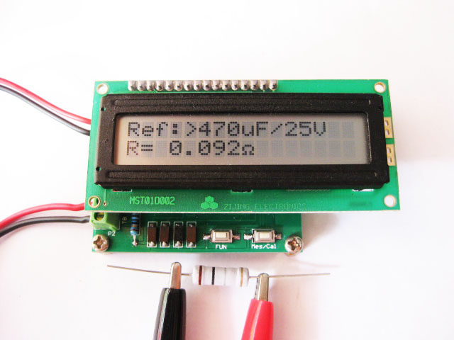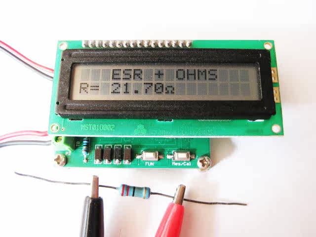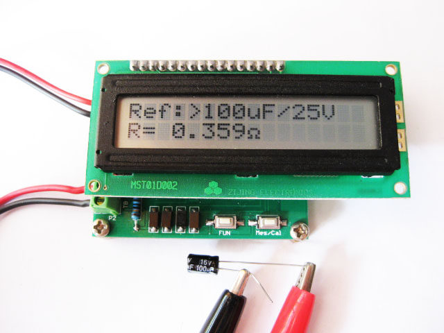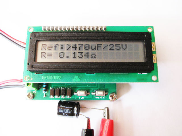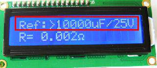In the LCD1602 display shown in the figure below, "10000.0uF" is displayed in the lower line of letters. This value is not the capacity value of the capacitor under test. This value is just a reference value. Please refer to the ESR capacitor-resistance reference table for details.