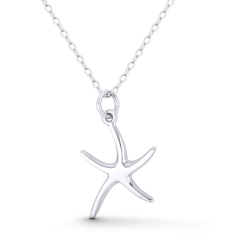 The featured pendant is cast in .925 sterling silver and showcases a starfish charm finished w/ a sturdy ring-bail that can accommodate most thin-sized chains.