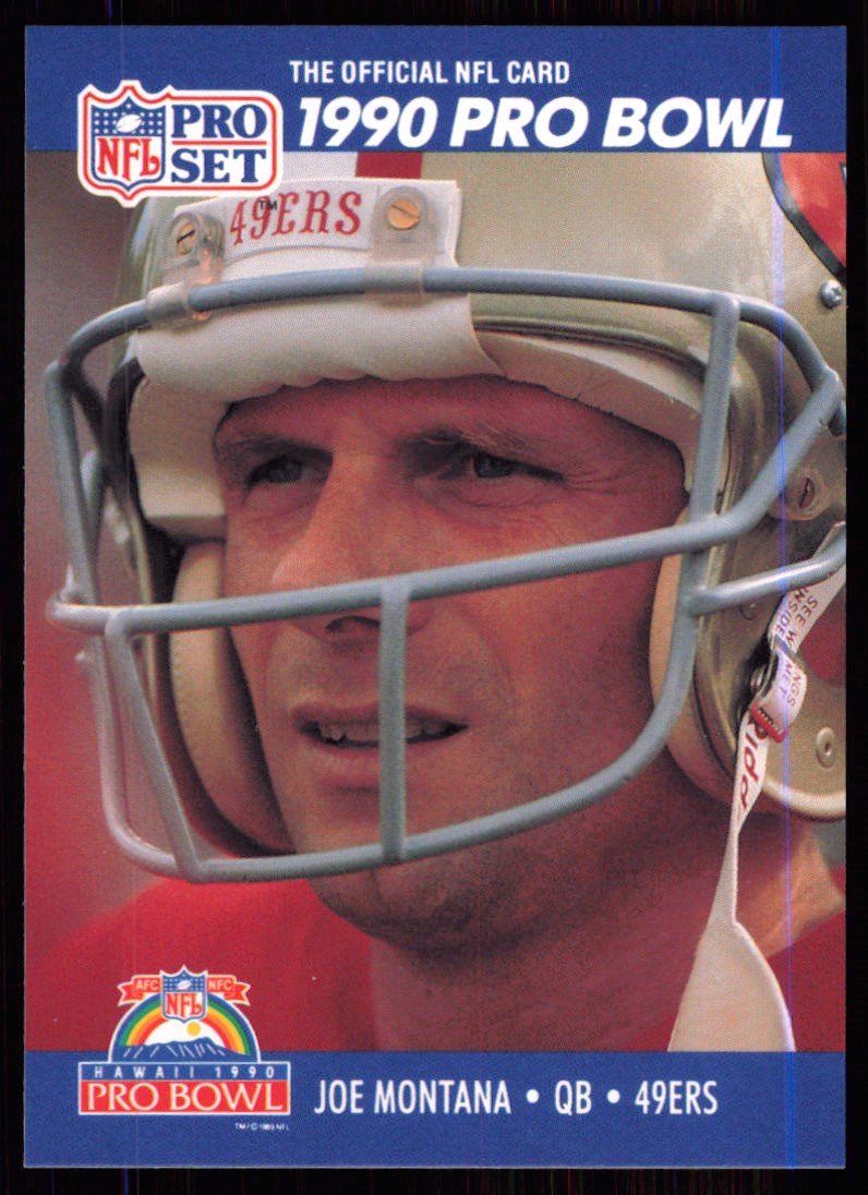 | Description: | Joe Montana | | Category: | Football | | Year: | 1990 | | Product: | Pro Set | | Team: | San Francisco 49ers | | Card Number: | 408 | | Dimensions: | 3½" x 2½" |