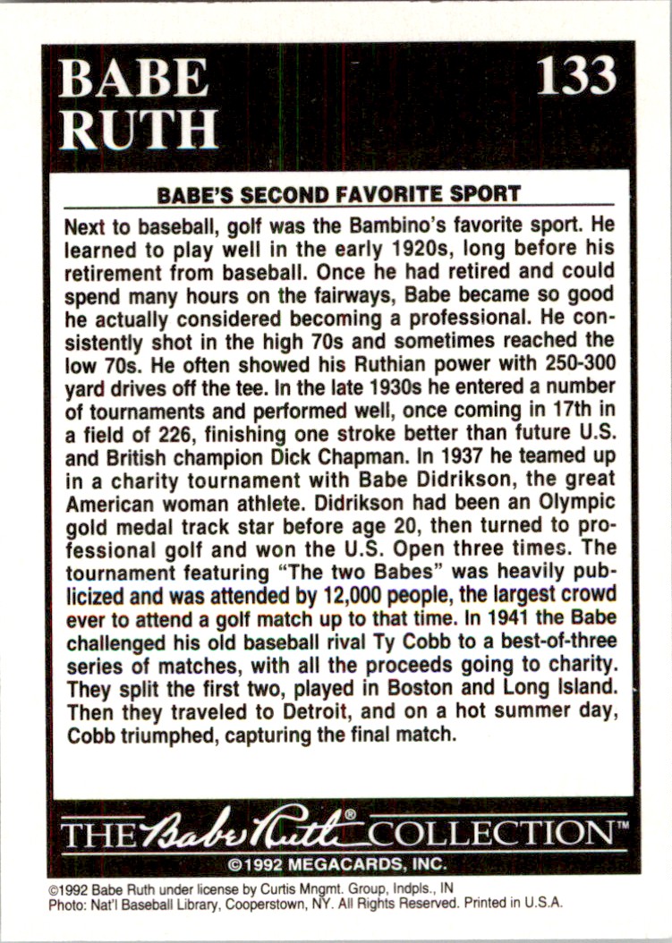 | 1992 Megacards Babe Ruth 133 The Babe on the Links |