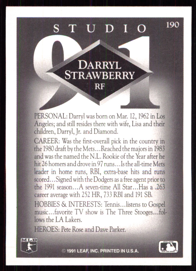 | 1991 Studio 190 Darryl Strawberry |