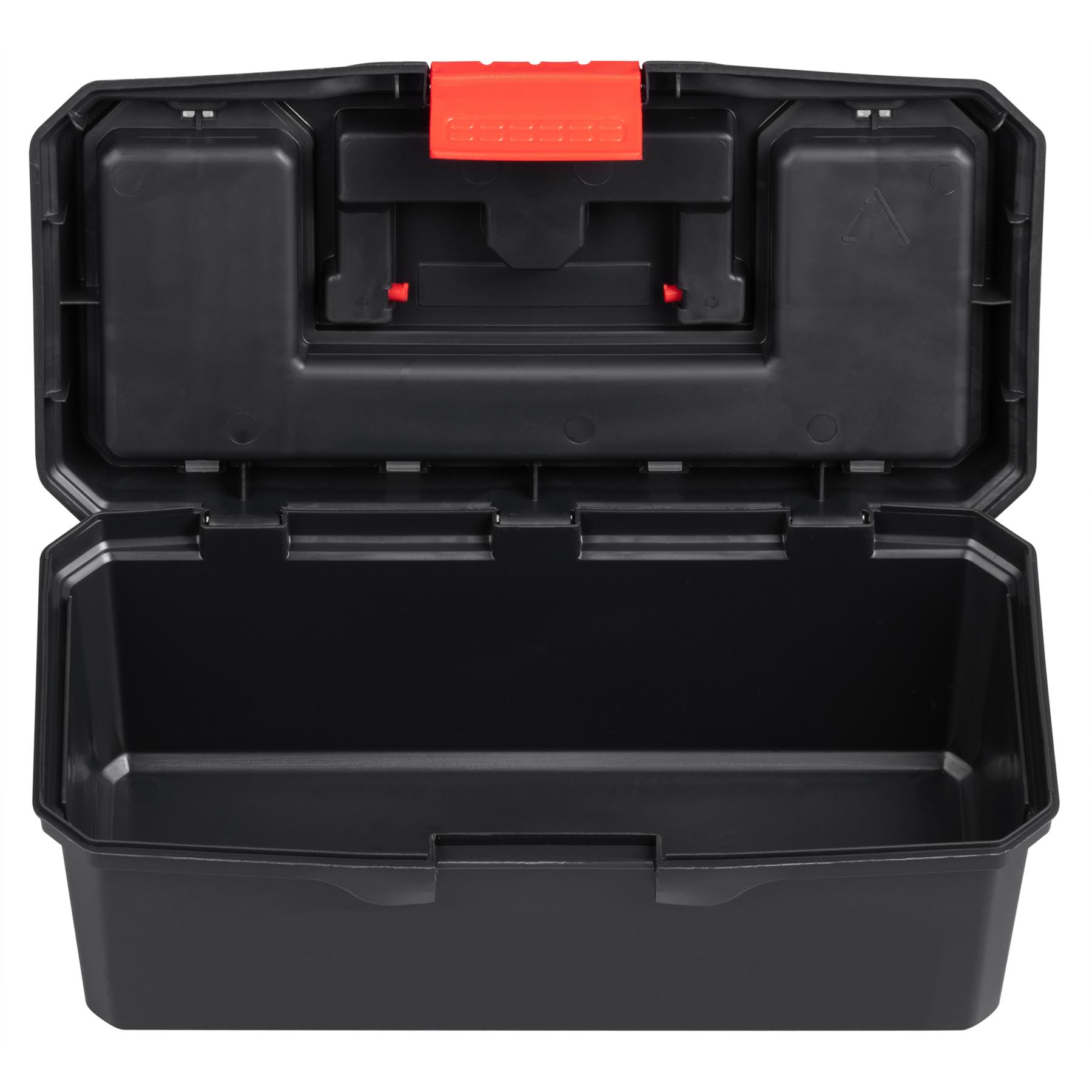 This 13" heavy-duty plastic tool case is a perfect solution for hand tool storage, and is an excellent nail and screw organiser. Including 7 compartments at the top, 4 in the tote tray and 1 large tray at the bottom.