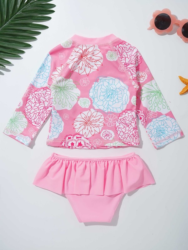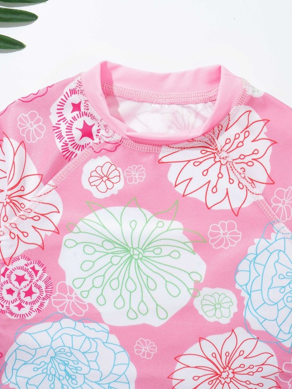 Long sleeves rashguard top, designed with vivid flower patterns, keep away from the burning sun.