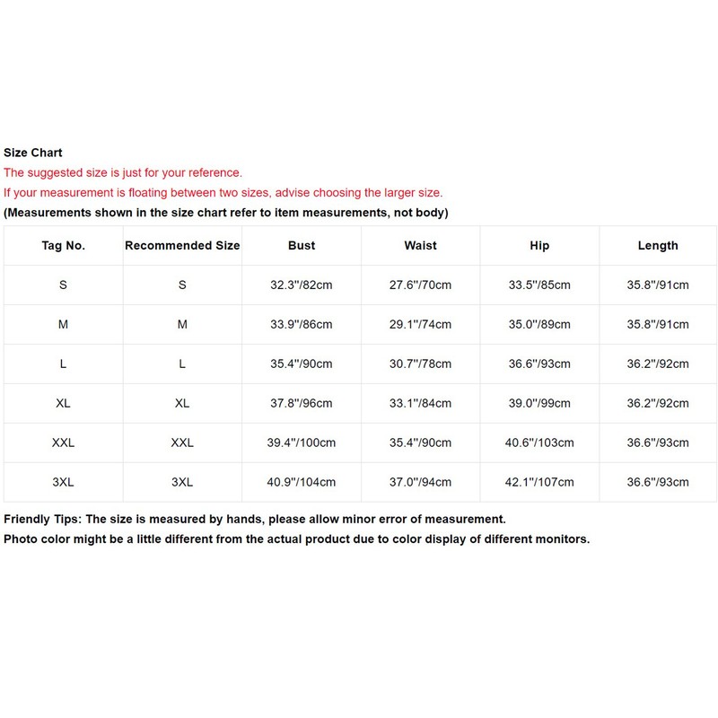 | Tag No. | Recommended Size | Bust | Waist | Hip | Length |