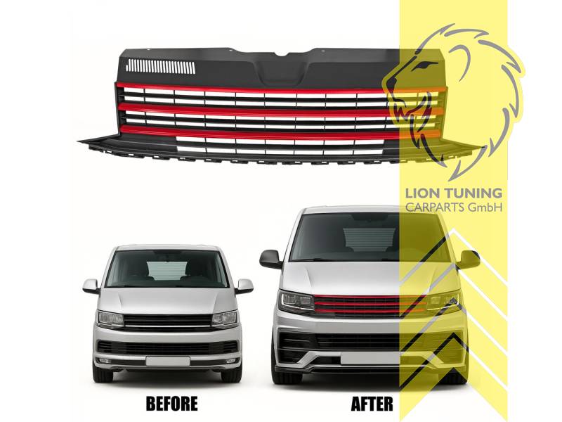 Sportgrill Kühlergrill für VW T6 Transporter Multivan Caravelle schwarz rot