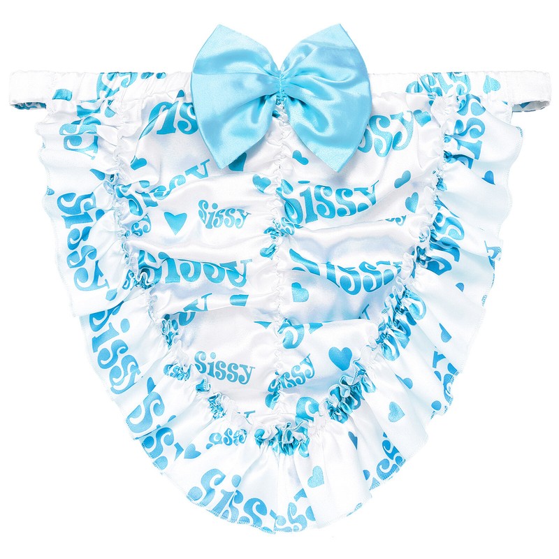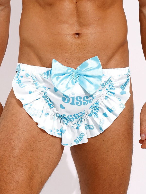 Mid waist briefs for men, letter print, ruffle trim and pleated back, two big bowknots decoration, looks cute and flattering.