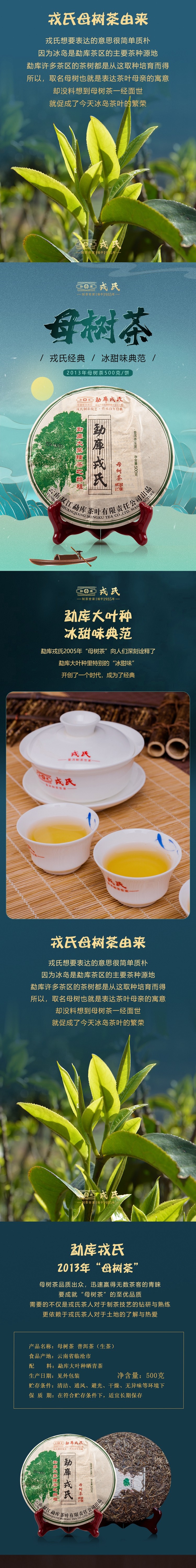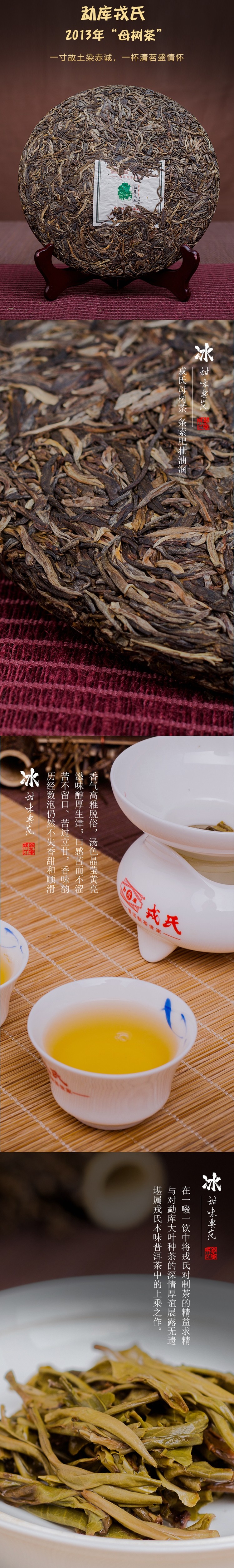 Product name: Mengku Rongshi the Ancestor of Mengku Big Leaf "Mother Tea Tree" Puer type: Raw puer Tea Production date: 2013 year. Net weight: 500g/Pc Origin: Yunnan, China Storage: Clean, airy, dry, avoid direct sunlight, no pollution, no srange smell Manufacturer: Yunnan Shuangjiang Mengku Tea Co.,Ltd. Manufacture Tea Material: Mother tree`s tea leaves of Yunnan big leaves species ( Without any additive).