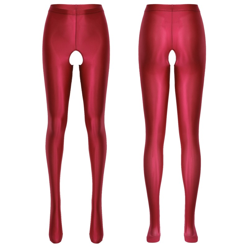 Womens Glossy Crotchless Pantyhose High Waist Elastic Waistband Leggings Nightwear.