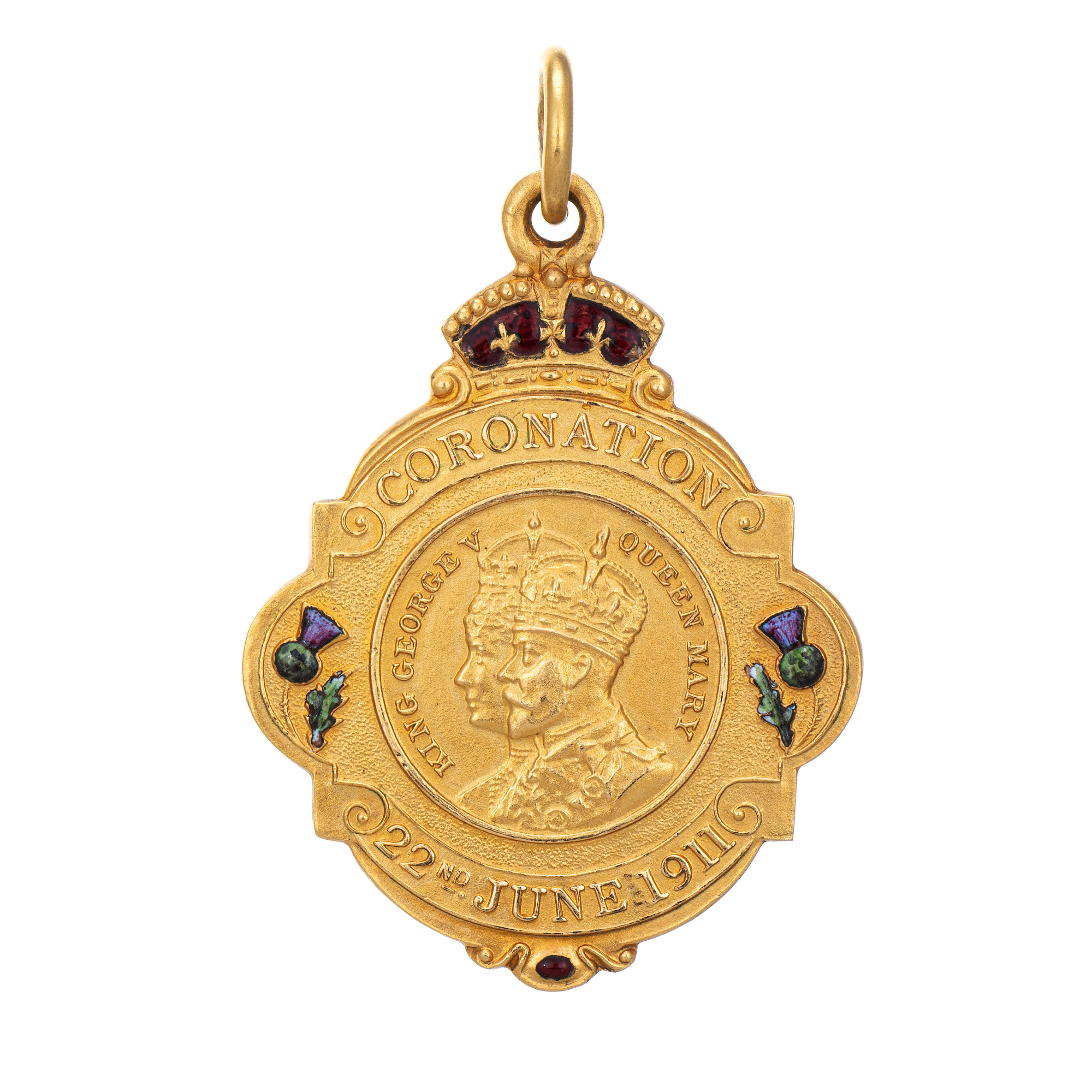 Antique Coronation Medallion 15k Gold George V Mary Pendant Enamel Glasgow