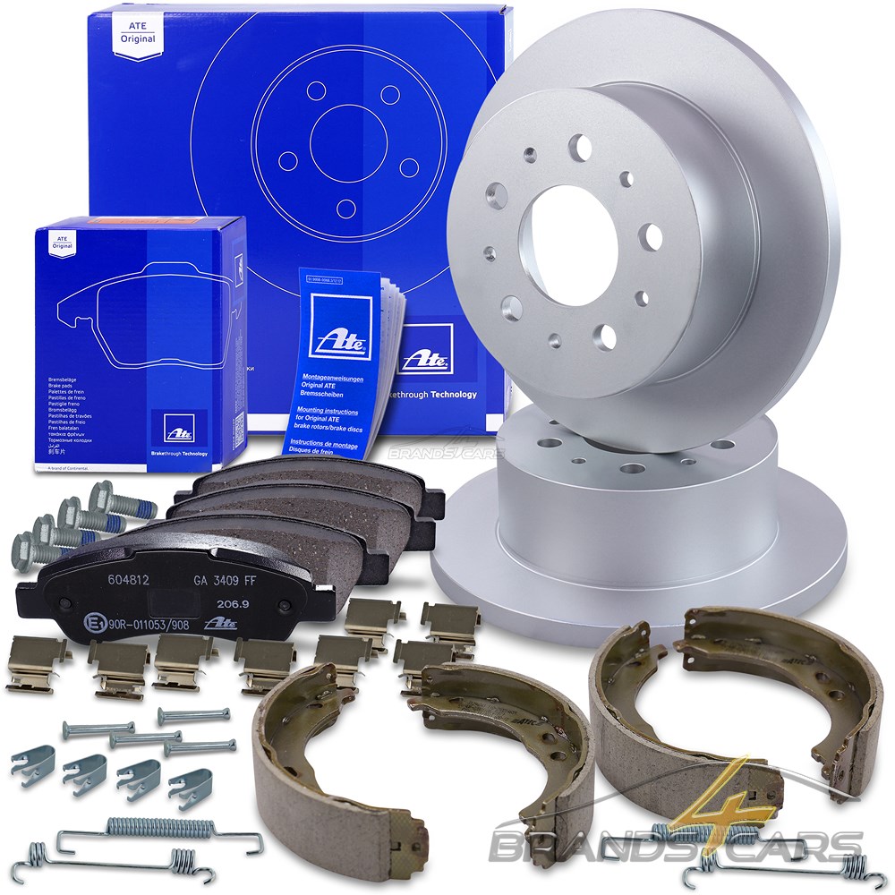 Bremsensatz ATE Bremsscheiben mit Bremsbeläge und Handbremsbremsbacken-Satz hinten