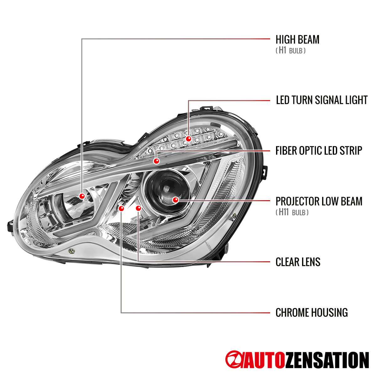 H1 high beam, H11 low beam bulbs are included.