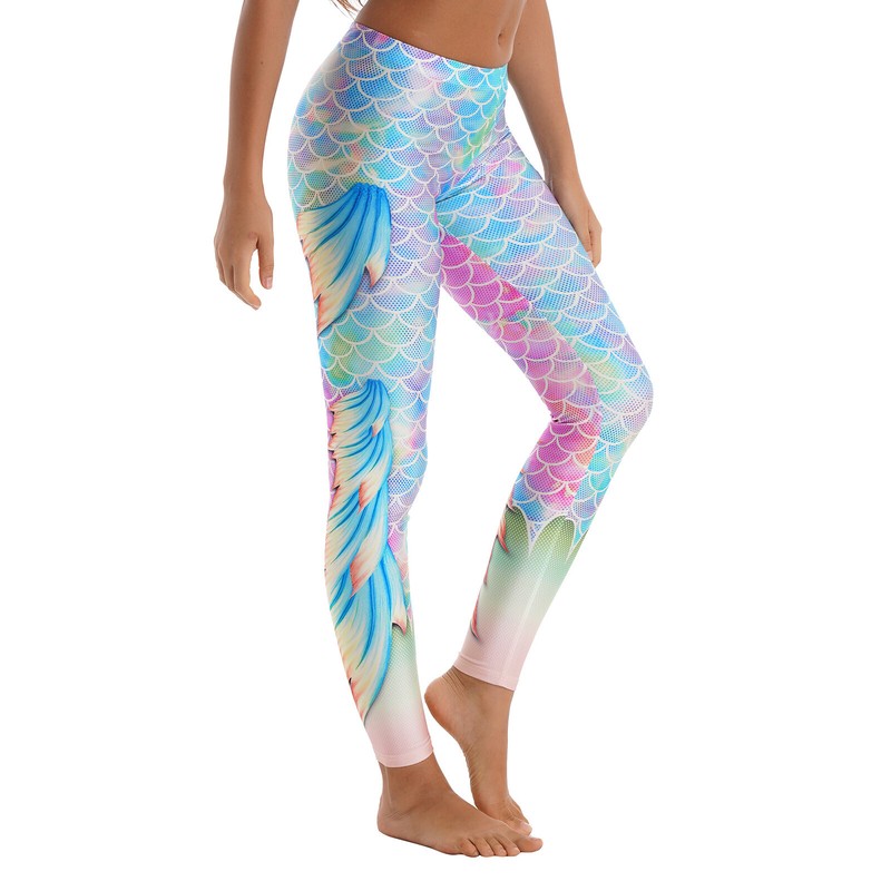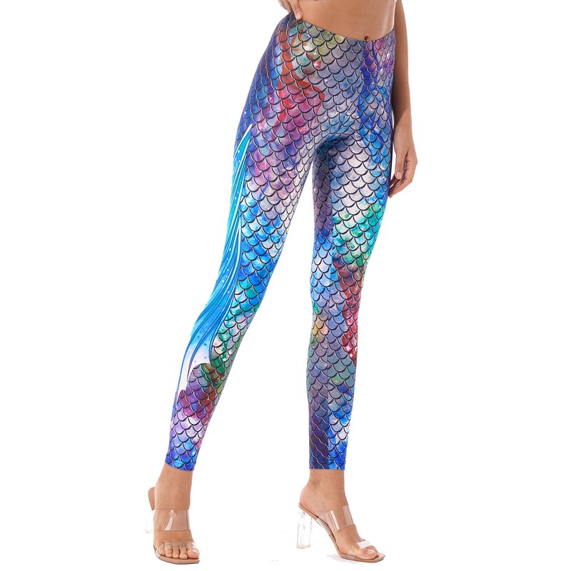 Womens Fashion Fish Scale Print Yoga Leggings Mermaid Role Play Trousers.