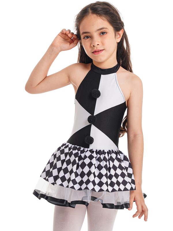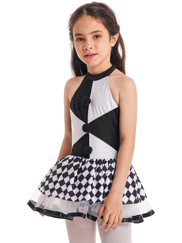 Kids Girls Clown Costume Printed Mesh Tutu Dress for Cosplay.