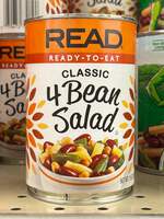 Green Beans, Water, Wax Beans, Kidney Beans, Garbanzo Beans, Sugar, Distilled Vinegar, Dehydrated Onions, Red Peppers, Salt, Soybean Oil, Turmeric.