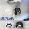 Customize your gaming setup with the White Wall Mount Designed for PS5 + 2 Controller Mounts (MOUNT-PS5W) from VIVO! Made of high-grade steel for excellent support, this versatile mount will hold your PlayStation 5 in a safe, convenient location for all your gaming adventures. The bracket design supports vertical orientation, 2 controller mounts are included for additional organization, and mounting hardware is provided for wood stud and drywall installation. The open design keeps your PS5 from overheating, and a security bolt and support brackets give maximum protection.